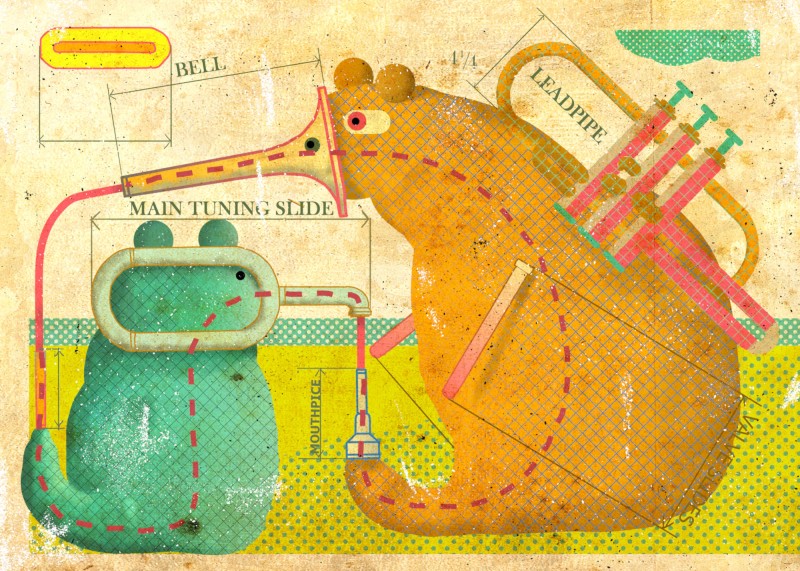 Akril, akvarel, olovka na drvu